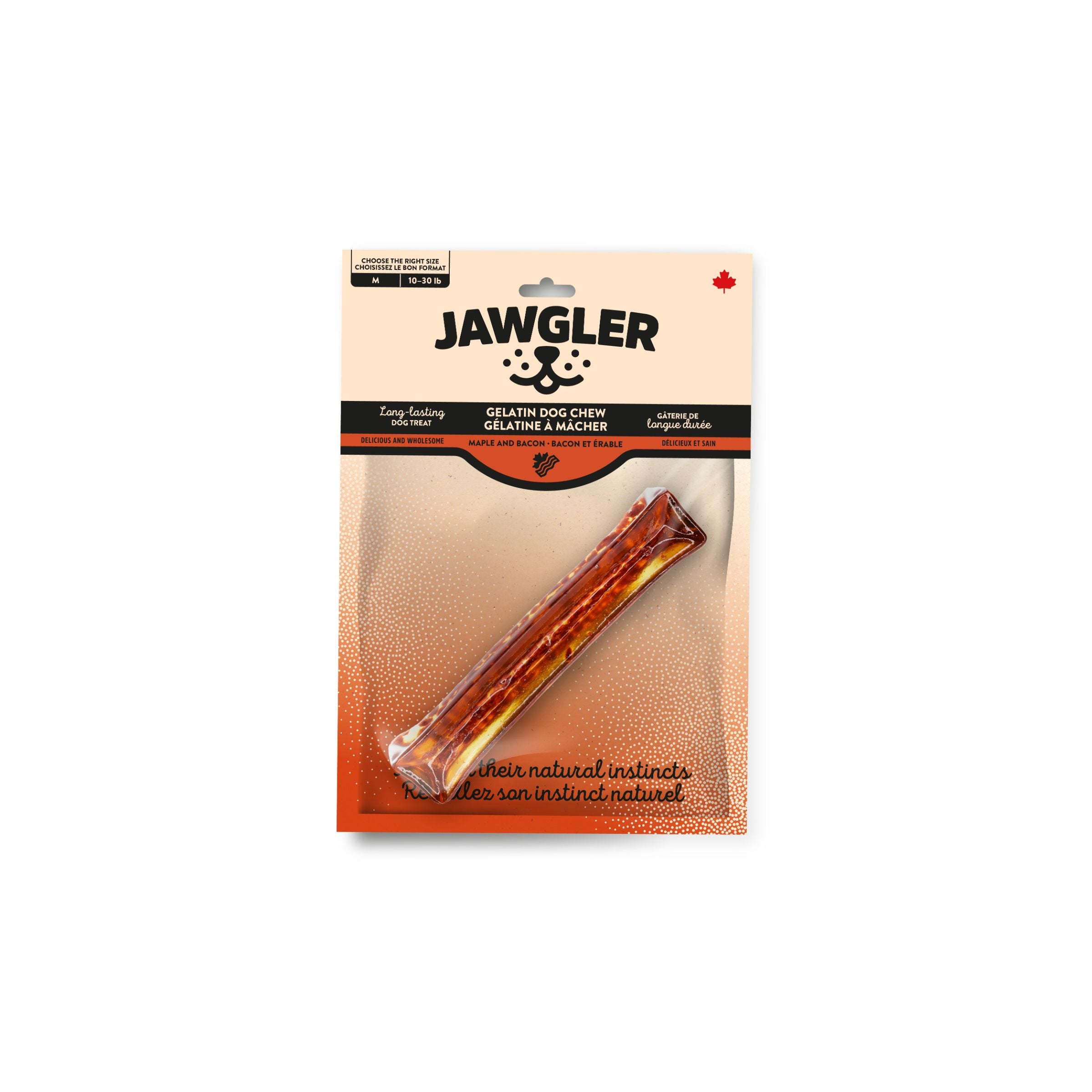 Gâterie de gélatine à mâcher pour chiens Jawgler. Saveur bacon & érable. Choix de formats.