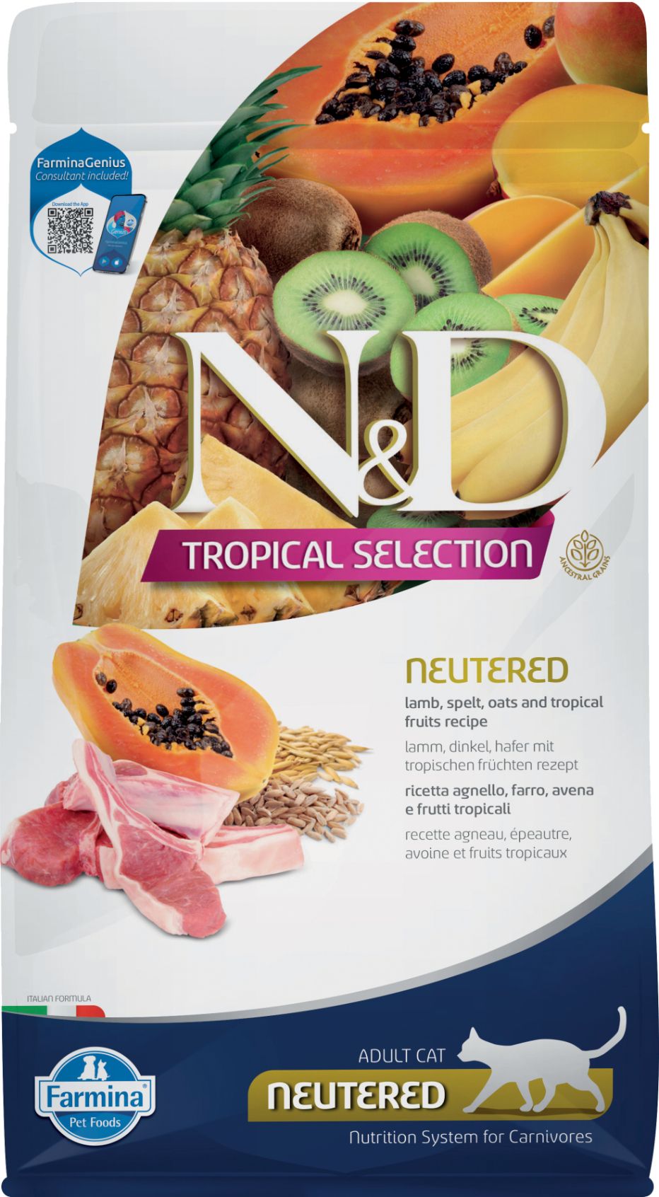 Nouriture pour chats stérilisés FARMINA N&d Tropical. Recette à l'agneau. 4.99 kg.