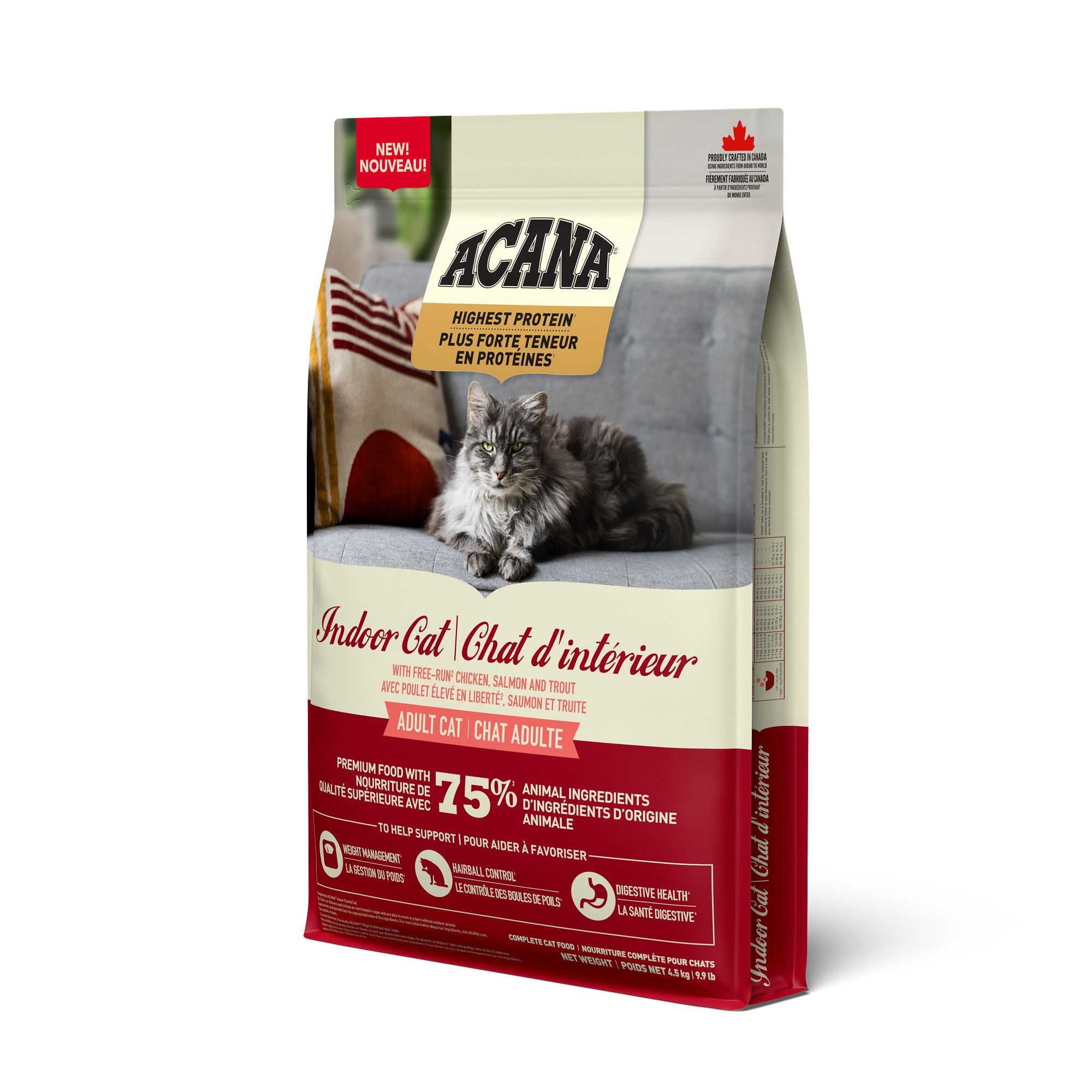 Nourriture sèche pour chats d'intérieur ACANA. Recette au poulet, saumon et truite. Choix de formats.