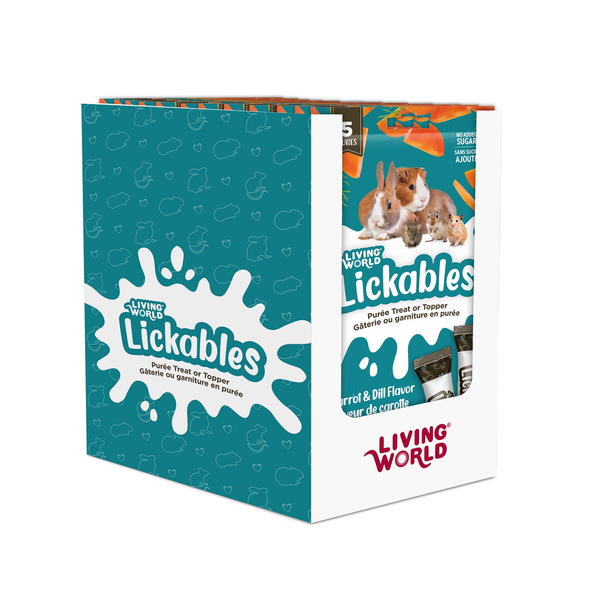 Offrez à votre petit animal quelque chose de spécial grâce aux gâteries Lickables Living World! Parfaites pour les lapins, les cochons d’Inde et d’autres petits animaux, ces délicieuses collations deviendront instantanément leur gâterie préférée. De plus, elles peuvent servir de substitut de légumes ou de fruits frais. Offertes en cinq saveurs irrésistibles.