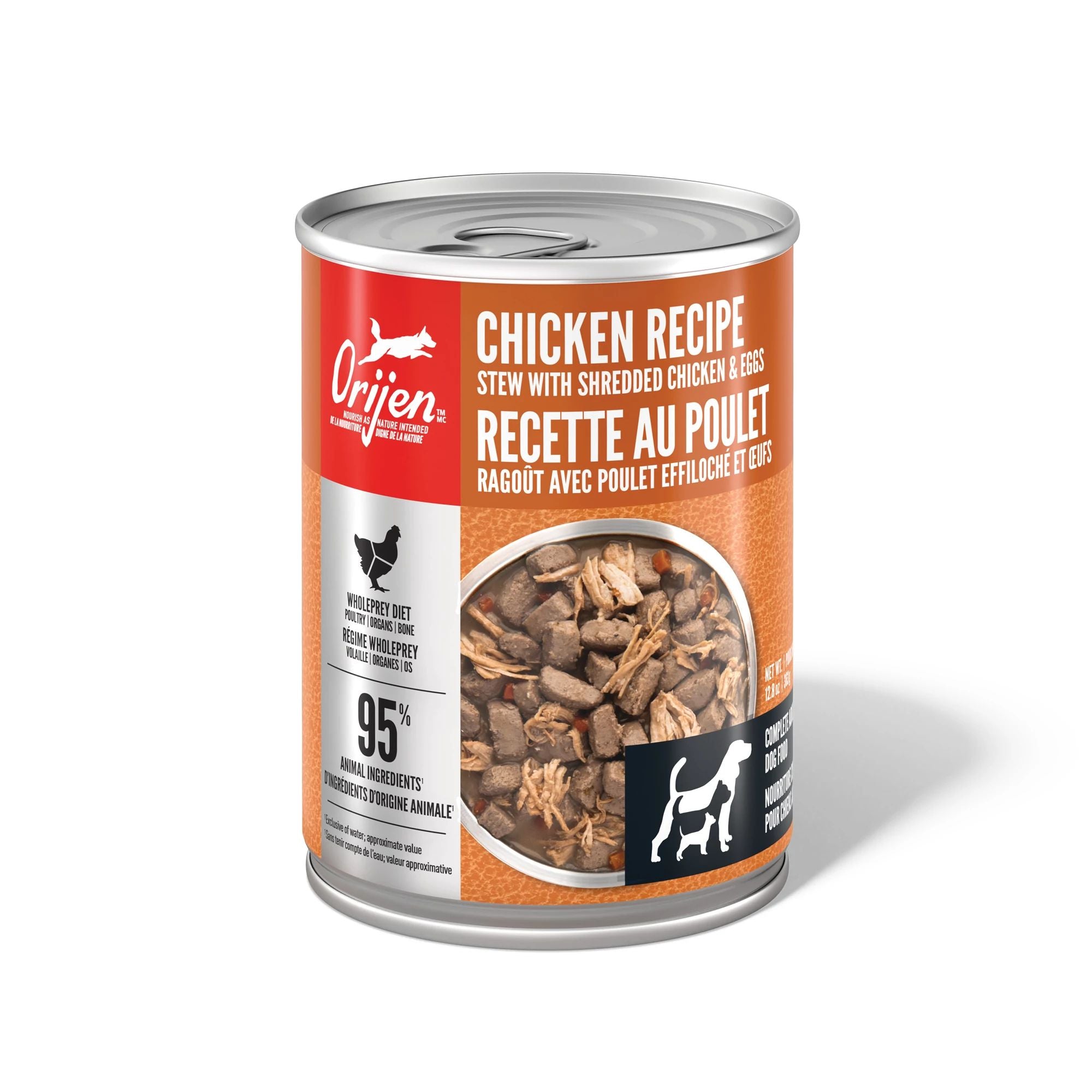 Nourriture humide ORIJEN pour chiens. Recette ragoût au poulet.