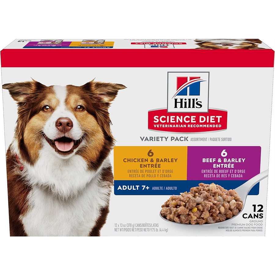 Nourriture humide pour chiens seniors 7+ HILL'S SCIENCE DIET - Emballage varié poulet et boeuf - 12 x 370g