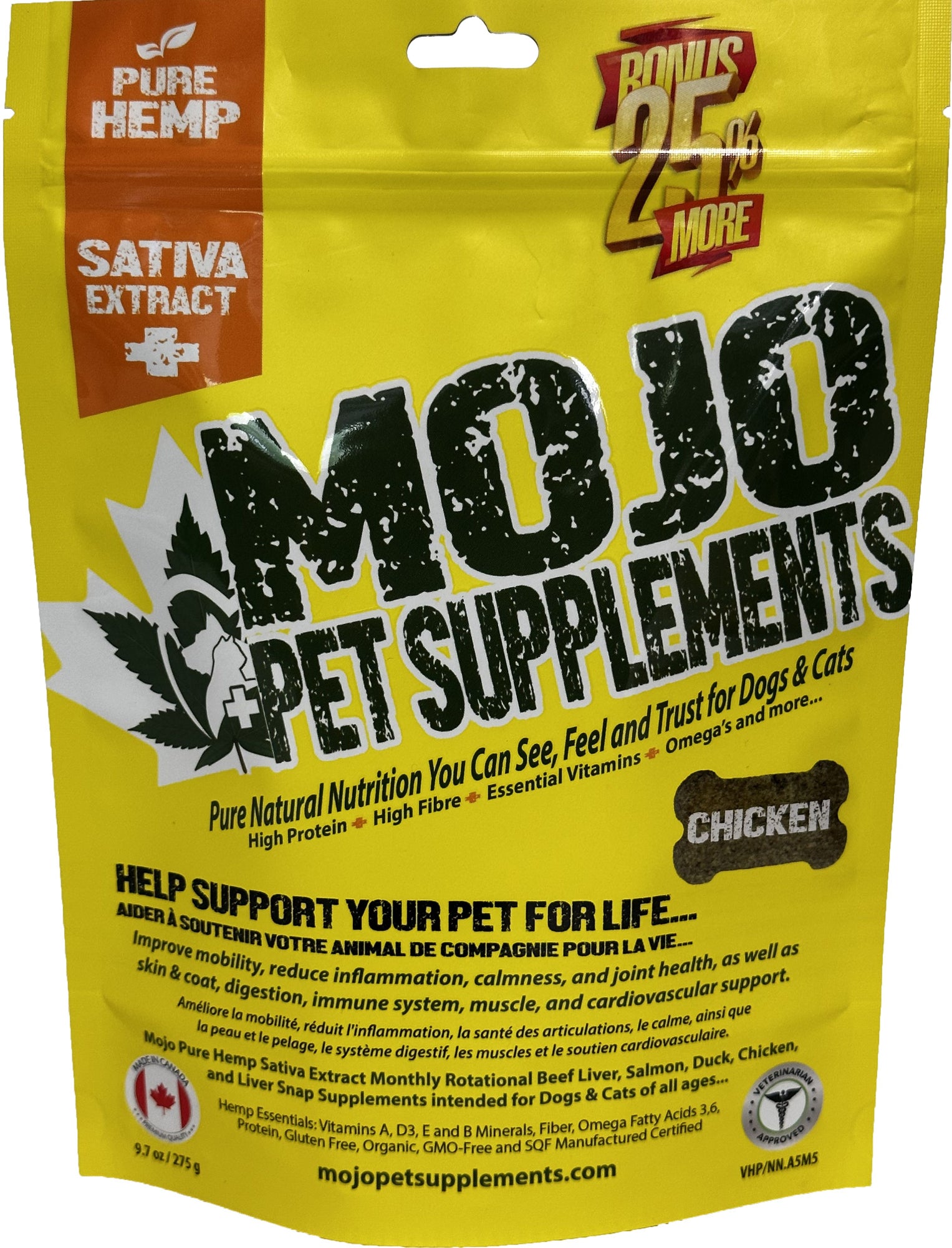 Suppléments à base de chanvre pour chiens et chats MOJO - Saveur de poulet - Choix de formats