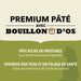 Composition: Saumon, poulet, bouillon d’os ou d’arêtes de poisson, bouillon d’os de poulet, foie de poulet, citrouille, gomme de caroube, taurine, huile de saumon, phosphate tricalcique, sel, vitamines [supplément de vitamine E, mononitrate de thiamine, niacine, supplément de vitamine A, chlorhydrate de pyridoxine, pantothénate de calcium, supplément de riboflavine, acide folique, supplément de vitamine D3, biotine, supplément de vitamine B12, complexe de bisulfite de sodium et de ménadione], gomme de guar, minéraux [chlorure de potassium, sulfate de magnésium, chélate de zinc d’acides aminés, chélate de fer d’acides aminés, chélate de cuivre d’acides aminés, chélate de manganèse d’acides aminés, sélénite de sodium, iodure de potassium], chlorure de choline.