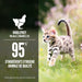 Les 9 premiers ingrédients de ce régime sont du poulet, du saumon, du foie de poulet, des sardines entières, du bouillon d’os de poulet, du bouillon d’arêtes de poisson, du cœur de poulet, des œufs et de l’huile de thon crus. Notre régime WholePrey authentique contient les parties les plus succulentes et riches en nutriments de la proie comme la volaille ou le poisson, les organes, les arêtes et les os, à l’image de ce que les ancêtres de votre chat mangeaient dans la nature. Ce régime est un pâté haut de gamme de volaille et de poisson. Son taux d’humidité de 80% permet de nourrir votre chaton tout en le gardant hydraté.