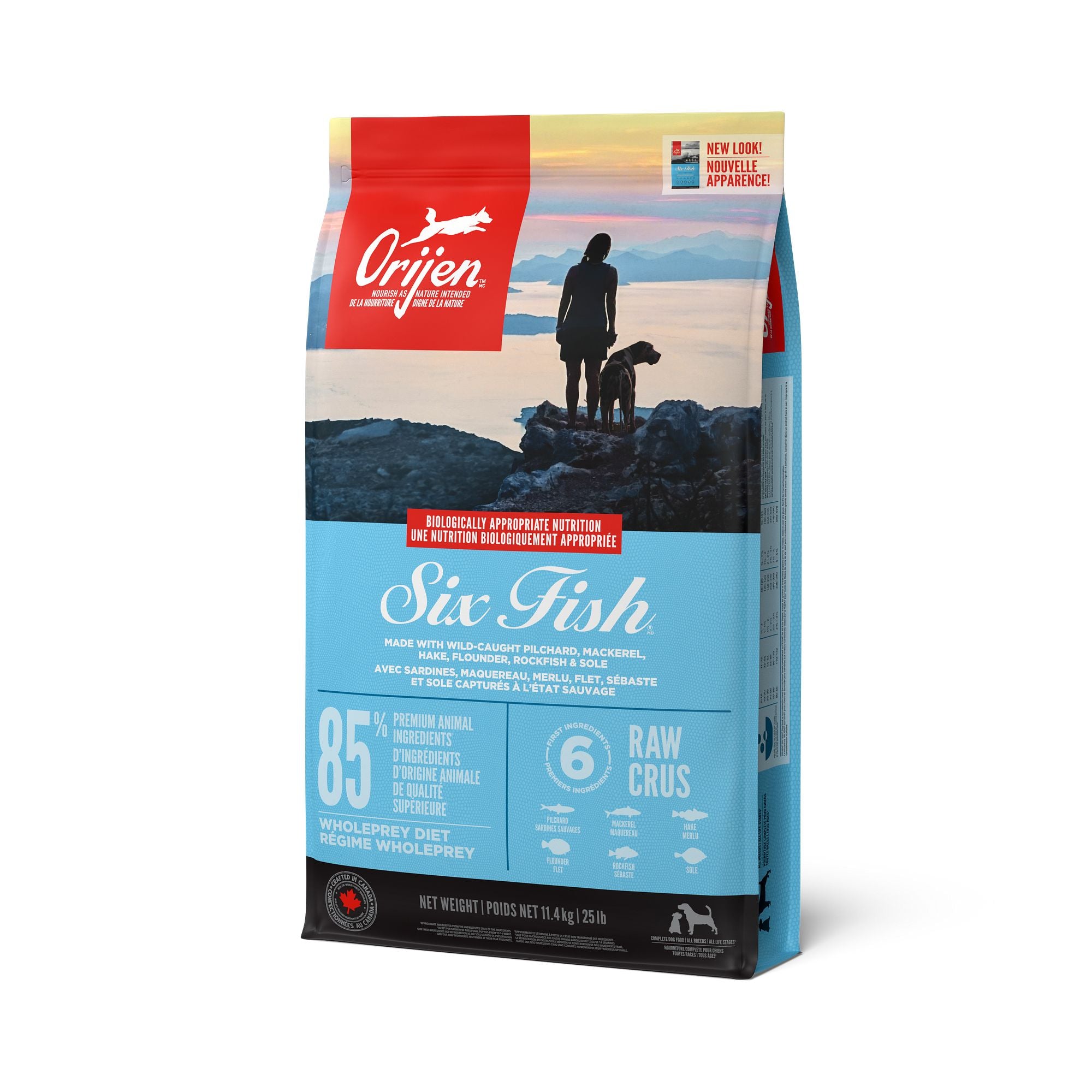 Nourriture sèche pour chiens Orijen. Recette de poissons du Pacifique. Choix de formats.
