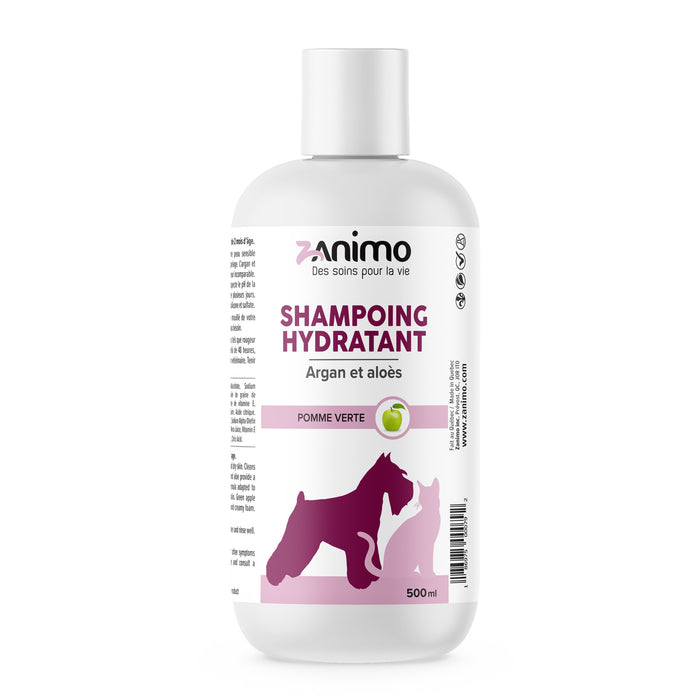Zanimo SHAMPOING HYDRATANT - Argan aloès pomme verte. Pour chiens et chats. Choix de formats.
